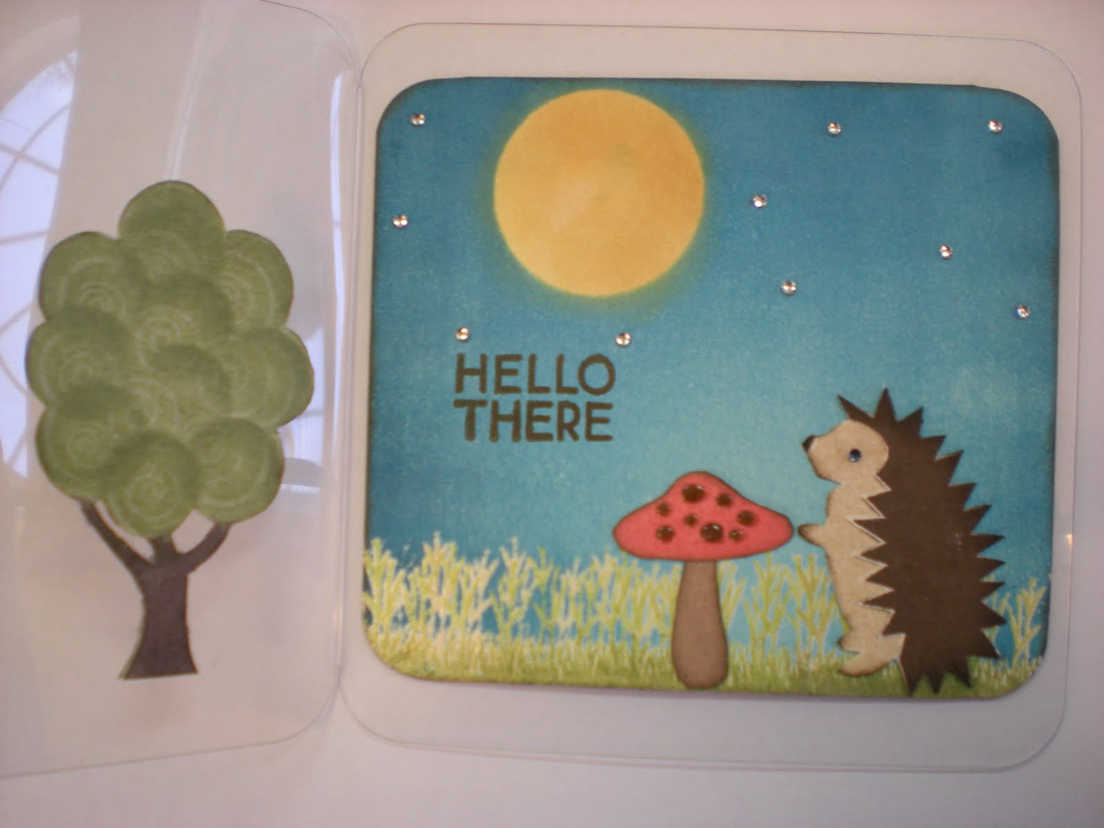 For the background: I used the Zindorff brayering technique. The sky is inked in Buttercup, Cremebrule, Honey and Blush. The grass is inked in Sweetleaf and Olive. This was done on a solid piece of paper (I cut the panels later.)
